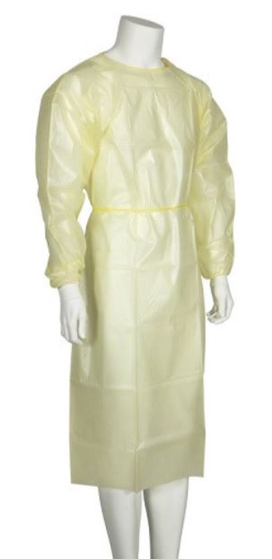Kertakäyttöinen vedenpitävä suojatakki, jossa on hihansuu-, niska ja vyötärönauhat. Käytetään suojaamiseksi ristikontaminaation välttämiseksi, esim. tarttuvien tautien yhteydessä.