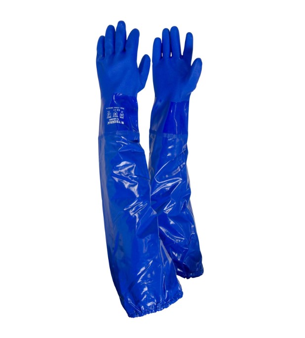Erittäin pitkä ja suojaava käsine, jossa pitävän otteen takaava mikrokarhennus. Käsine suojaa kemikaaleilta ja sopii täydellisesti käytettäväksi säiliöiden puhdistuksessa. Se on öljynkestävä kolminkertaisen PVC-pinnoitteen ansiosta ja pysyy pehmeänä kylmissä olosuhteissa. Ftalaatiton.