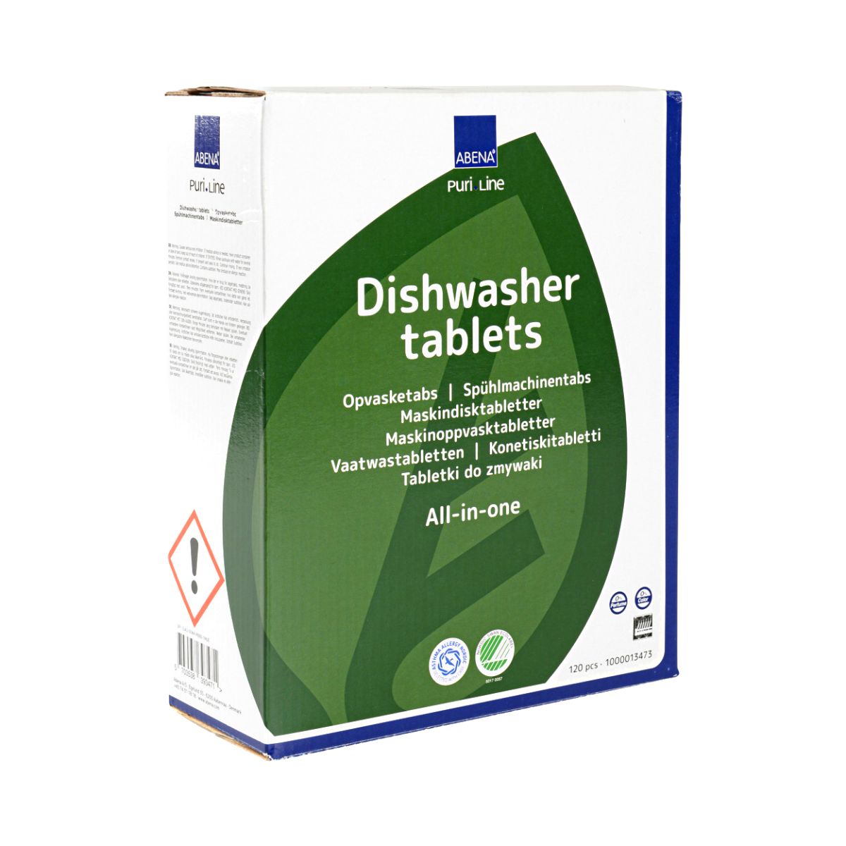 Abenan Puri-Line tabletti on fosfaatiton tiskitabletti kotitalouksien tiskikoneisiin. Tehoaa jo 45 °C:ssa.