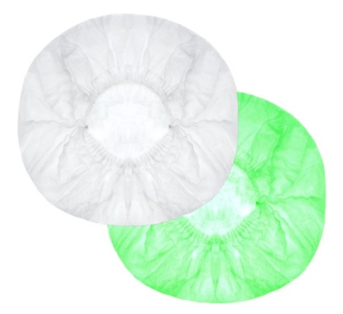 Valkoinen suojapäähine kuminauhareunalla. Yksi koko.
