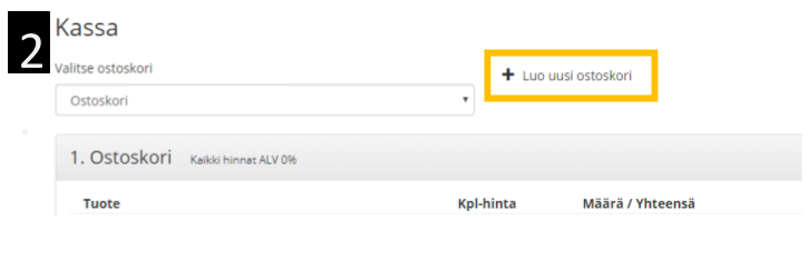 Lisää haluamasi tuotteet ostoskoriin (kuva 1). Mikäli haluat tilata ostoskorin tuotteet myöhemmin tai lisätä sinne tuotteita eri päivinä, muista tallentaa se ennen uloskirjautumista. Ostoskorin sisältöineen näet sivun ylälaidassa oikealla olevasta pudotusvalikosta. Valitut tuotteet pysyvät ostoskorissa niin kauan, kunnes ne on lähetetty eteenpäin tai poistettu korista. Voit myös luoda uusia ostoskoreja (= tilauspohjia) ja antaa niille nimen (kuva 2). Kun olet valinnut koriin halutut tuotteet, klikkaa "luo uusi tilauspohja" ja anna tilauspohjalle nimi. Tämä tilauspohja on nyt tallennettu ja käytettävissä jatkossa, siihen voi lisätä ja siitä voi poistaa tuotteita tarpeen mukaan.