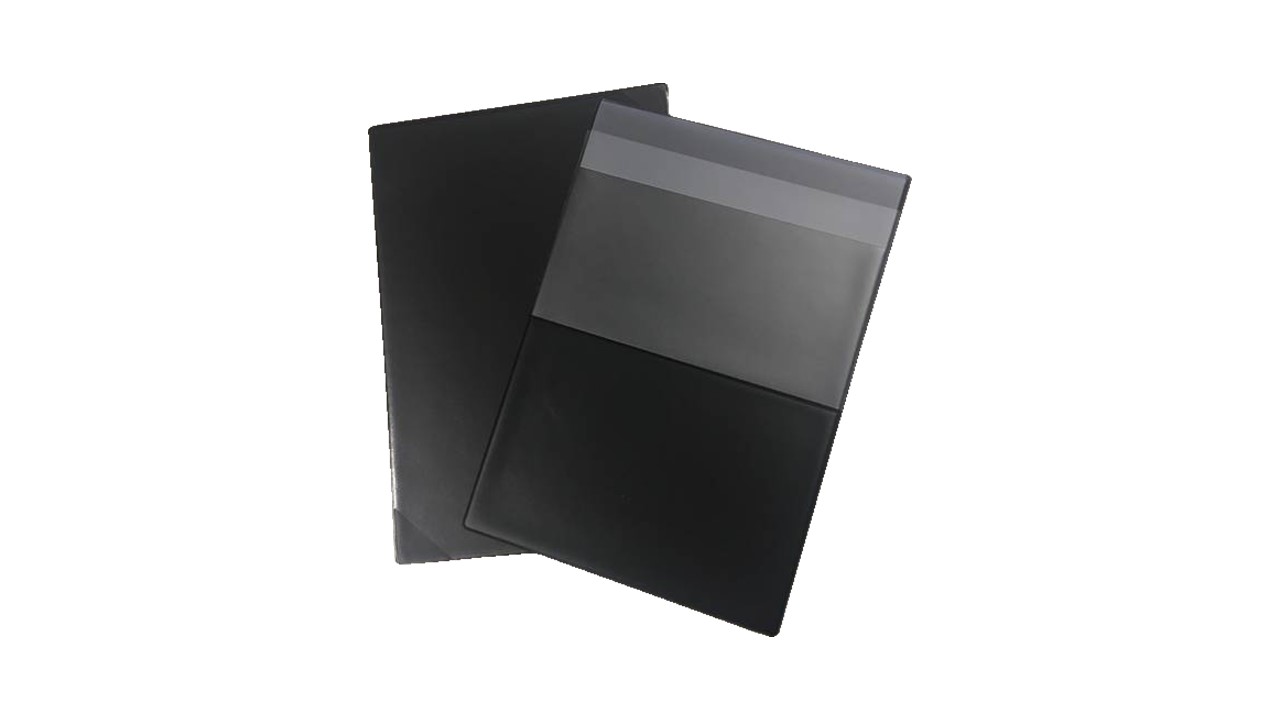- Kova, taittamaton, musta taustamuovi.