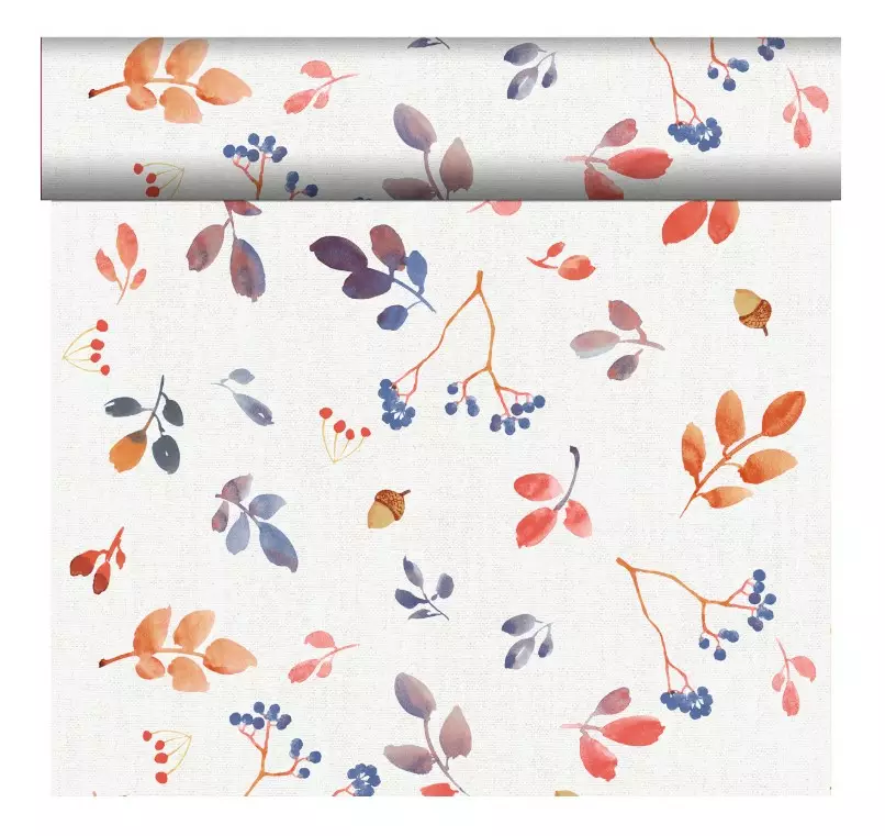 Dunicel poikkiliina kohottaa juhlien tyyliä ja tunnelmaa peittämättä koko pöytää. Bio Dunicel -tuotteet on valmistettu FSC-sertifioidusta materiaalista. Kaunis syksyinen kuosi.