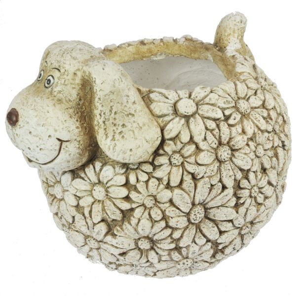 Koira patsas ja istutusruukku