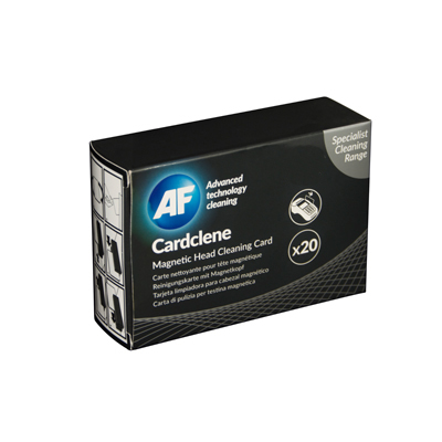 AF Cardclene. Puhdistuskortti kortinlukijoiden, kassapäätteiden ym. puhdistamiseen. Sopii kaikkiin laitteisiin, joissa korttia käytetään. Kyllästetty puhdistusaineella. Pakkaus sisältää 20 kpl erillispakattuja puhdistuskortteja.