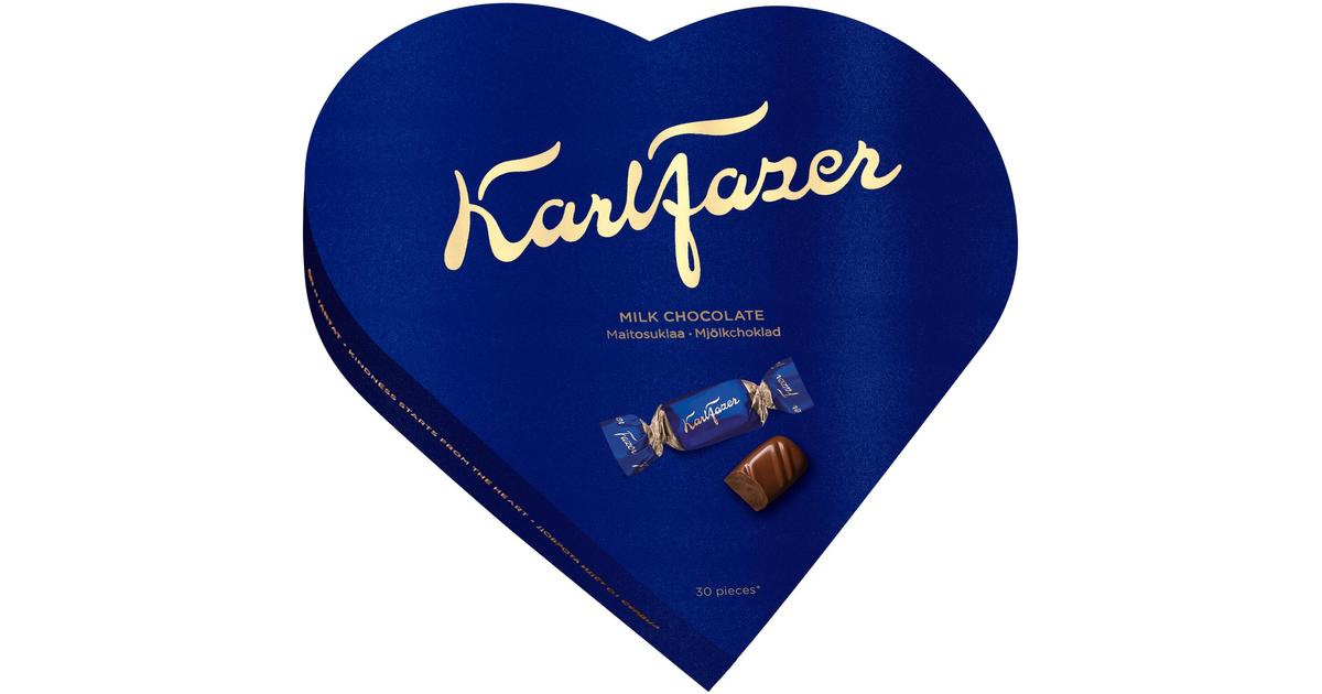 Kaunis sydämenmuotoinen suklaarasia on täydellinen lahja antaa ja saada. Suklaarasia sisältää Karl Fazer kääreellisiä maitosuklaakonvehteja. Kyseessä on Suomen rakastetuin suklaa, jonka ainutlaatuisen täyteläisen maun ovat taanneet parhaat raaka-aineet jo vuodesta 1922 saakka. Tunnistat tämän aidosta maidosta valmistetun kansallisaarteemme maun lisäksi myös sinisestä kääreestä, jonka kultainen Karl Fazer -allekirjoitus toimii laadun takeena. Mikä parasta, kaikki Fazerin herkulliset suklaat on valmistettu 100 % vastuullisesti tuotetusta kaakaosta.