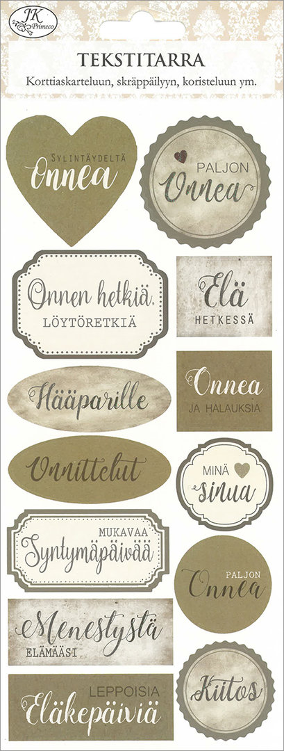 - Tekstitarra korttiaskarteluun ja koristeluun.