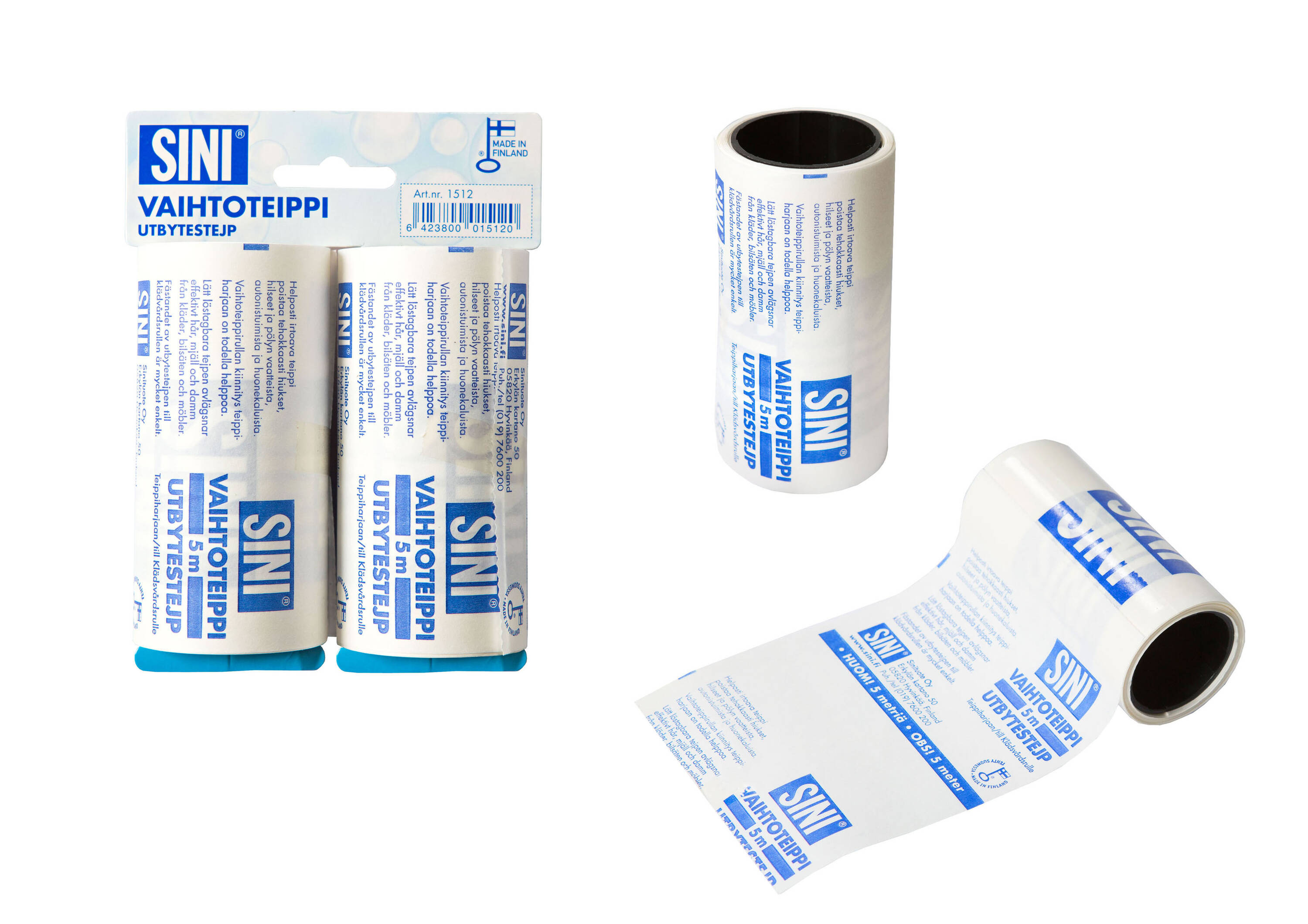 SINI-teippiharja on tarrarulla, jolla puhdistat vaatteista hilseen, hiukset, eläinten karvat, nukan ja muun pölyn.