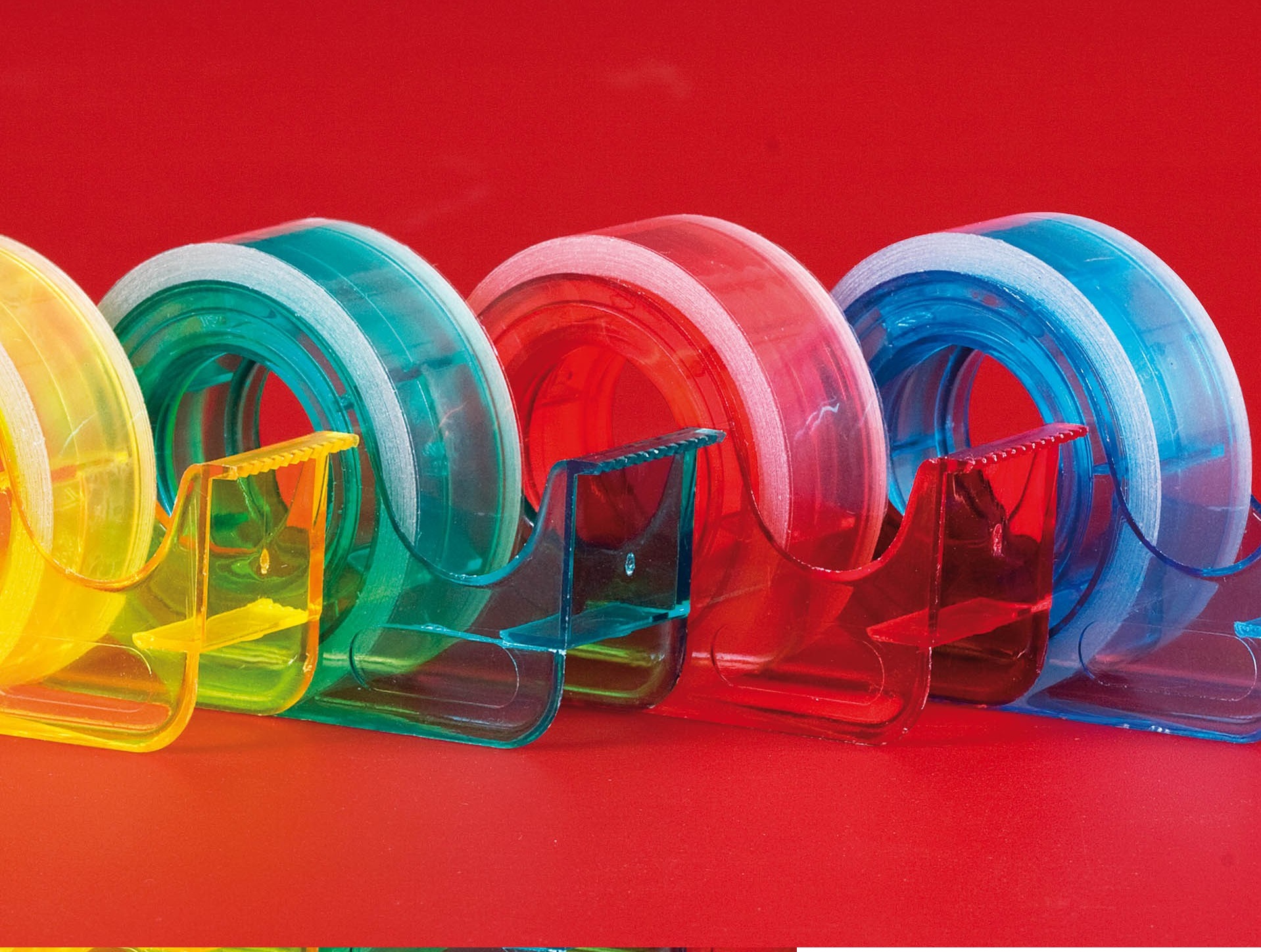 - Kirkkaan värisessä teippitelineessä.