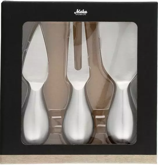 Tyylikkäät juustovälineet harjattua terästä. Juustosetti sisältää veitsen pehmeille ja koville juustoille sekä juustohaarukan. Erinomainen lahjaidea juustonystävälle.