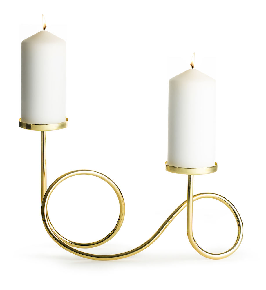 Sagaform Loop on koristeellinen kynttilänjalka kullanväristä metallia. Kynttilänjalan pidikkeet sopivat pöytäkynttilöille.
