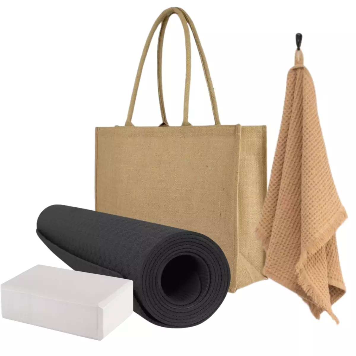 Käytännöllinen setti niin joogaamiseen, venyttelyyn, jumppaamiseen kuin meditointiinkin.