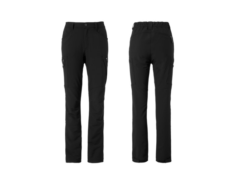 Naisten moderni työhousu, jonka 92% kierrätetty polyesteri ja 8% elastaani tekee housusta joustavan ja mukavan pitää päällä. Housussa useita käytännöllisiä taskuja, kuten esimerkiksi kynätasku ja kännykkätasku. Reisitaskussa ja takataskussa vetoketjut, joiden vetimet heijastavia. Lahkeen leveys säädettävissä tarranauhalla.