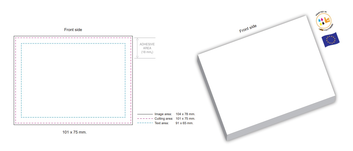 Painettu viestilappu liimareunalla Koko 101x75mm 50 arkkia/nide Valmiista aineistosta Toimitusaika n. 3 viikkoa hyväksytystä vedoksesta
