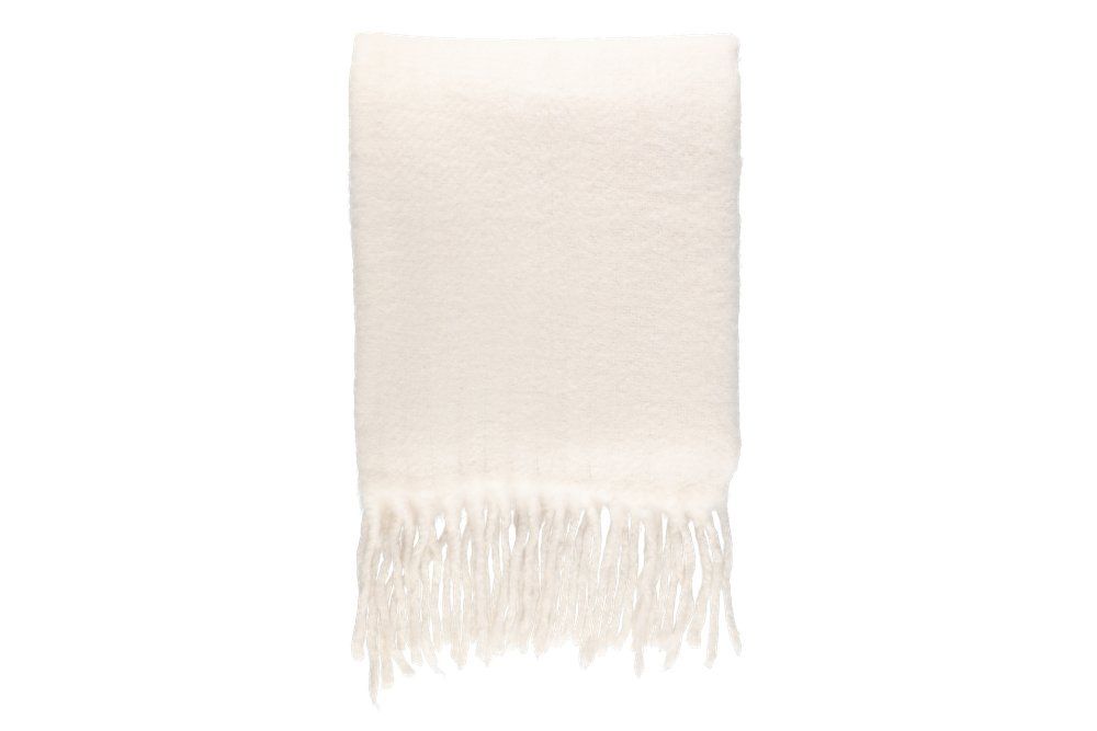 Torkkupeitto, jossa on pitkät koristeelliset hapsut. Koko 125 x 150 cm. Väri valkoinen. Materiaali 25 % villa, 55 % akryyli, 20 % polyesteri. Käsinpesu.