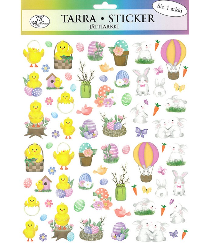 Kimaltavat pääsiäisaiheiset tarrat askarteluun ja koristeluun.