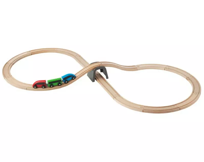 Lasten puinen junaratasetti sisältää junarada, kolmiosaisen junan sekä tunnelin. Sopii yhteen useimpien myynnissä olevien junaratojen kanssa. Junanvaunut kiinnittyvät toisiinsa magneetein.