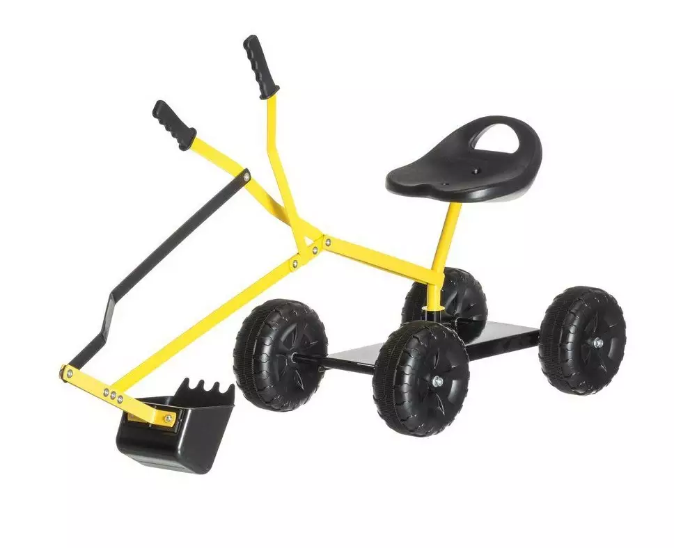 Päältäistuttava ja potkuteltava metallinen kaivuri on ihan mahtava lelu jokaiselle kaikille hiekkalaatikkoleikkien ystäville! Liiku ja kaiva, niin hauskaa! Koko ilman kaivuria 32 x 53 cm ja istumakorkeus 34 cm. Kääntyy 360 astetta. Enimmäiskuormitus 40 kg. Ikäsuositus 3+.