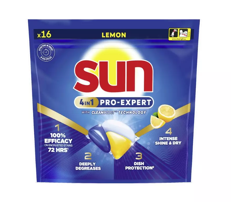 Sun konetiskitabletti tarjoaa poikkeuksellista pesutehoa, vaikka siinä on käytetty vähemmän kemikaaleja. Nestemäisen ja jauhemaisen koostumuksen parhaat puolet yhdistyvät tässä kompaktissa tabletissa, joka syväpuhdistaa, antaa astioille säihkyvää kirkkautta ja raikkaan tuoksun. Sun konetiskitabletit sisältävät huuhtelukirkasteen ja pesukoneelle tarkoitettua suolaa. Tabletti pesee astiat säihkyvän kirkkaiksi ja samalla myös tiskikone pysyy hyvänä. Parhaan suorituskyvyn säilyttämiseksi sulje pakkaus aina käytön jälkeen ja säilytä kapselit suojassa lämmöltä ja kosteudelta.