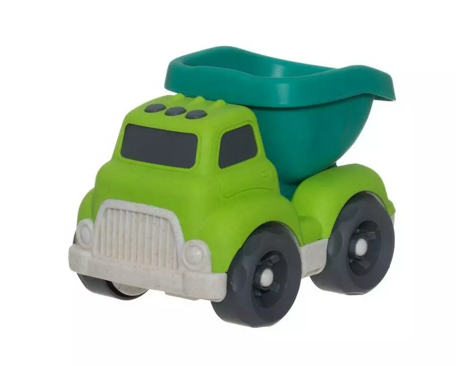 Biomuovista valmistettu kuorma-auto, jonka lava kippaa. Biomuovin valmistusmateriaalista 50% on vehnänkortta.