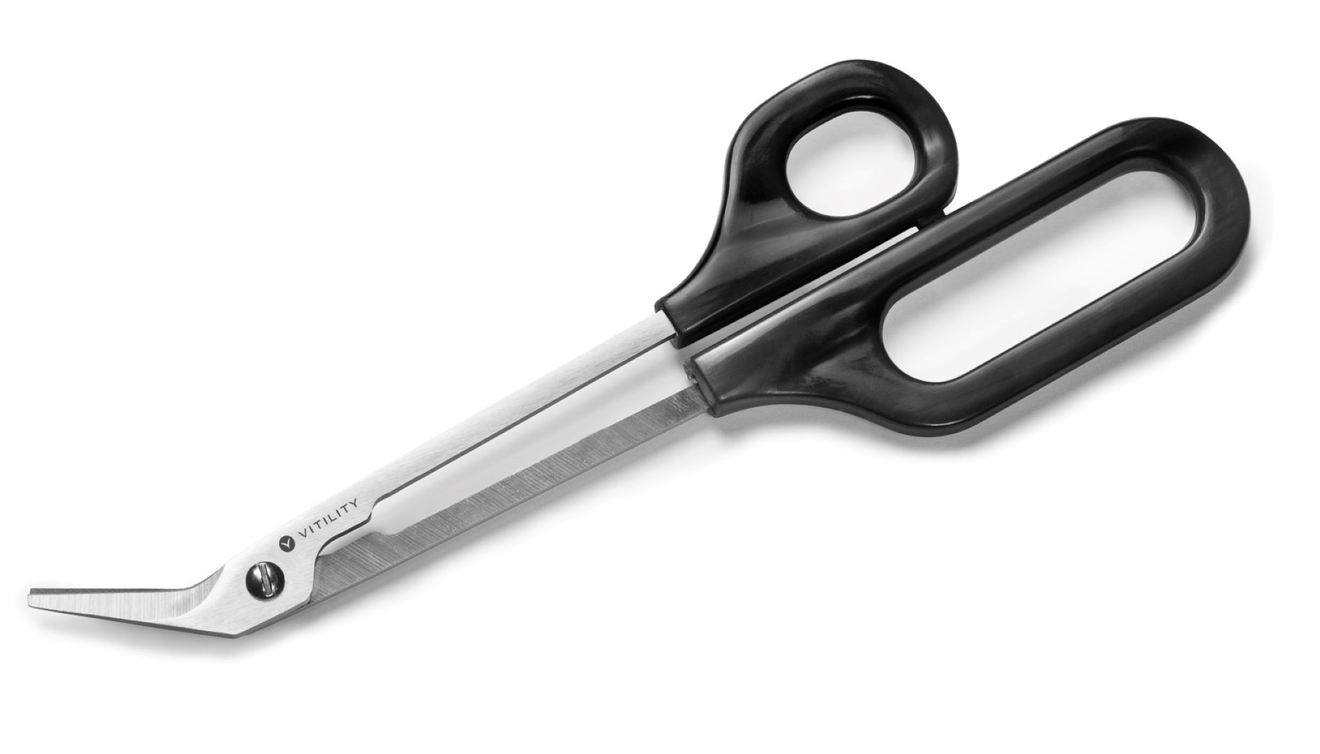 Iso kädensija ja taivutetut sakset helpottavat esim. varpaankynsien leikkaamista.