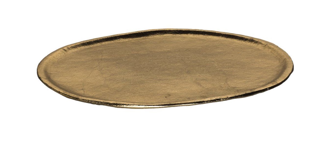 Kaunis epäsymmetrinen kynttilänalunen tuo juhlavuutta kattauksiin. Kullanvärinen alumiininen alusta sopii myös alustaksi koruille ja muille pienesineille.