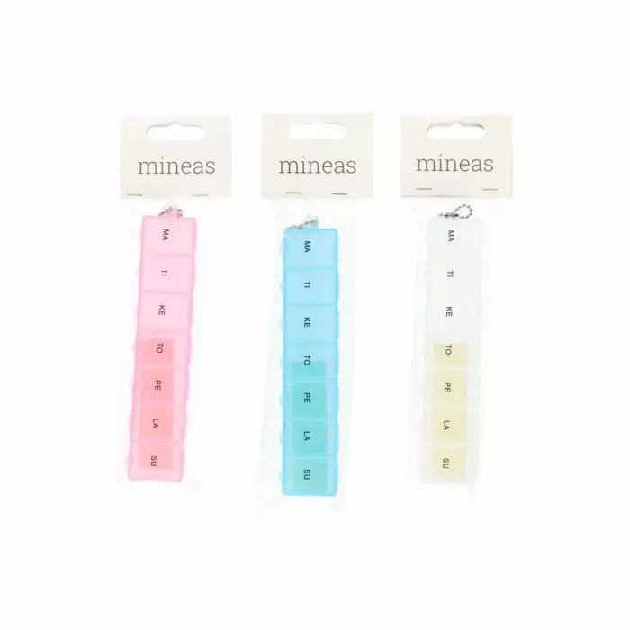 - Annostelija on jaettu seitsemään lokeroon, joihin on merkitty suomenkielinen viikonpäivä lyhenne.