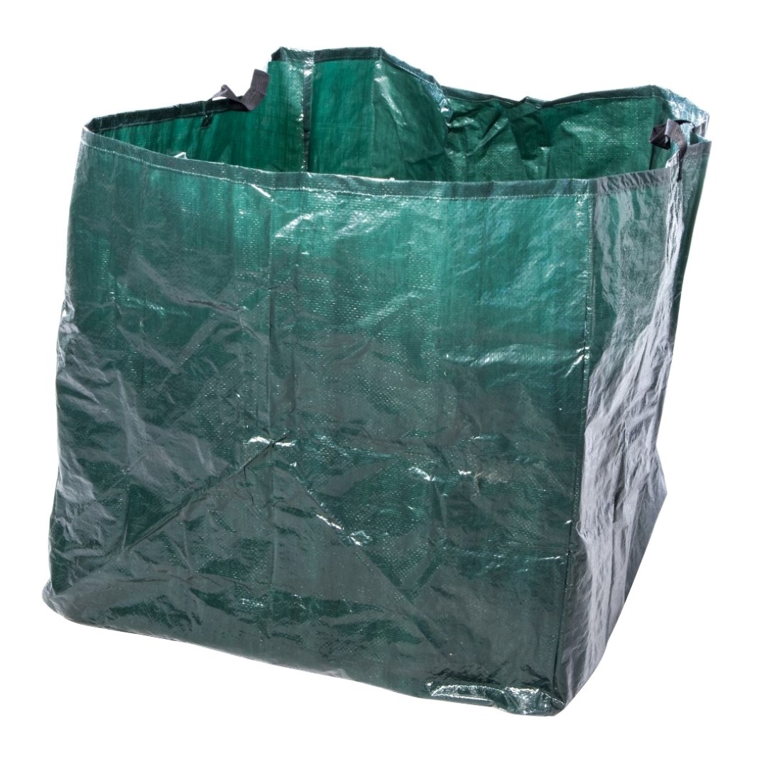 60 x 60 x 70 cm. Neliskulmainen lehtikassi kestävää vihreää PE-muovia. Vahvuus 100g/m².