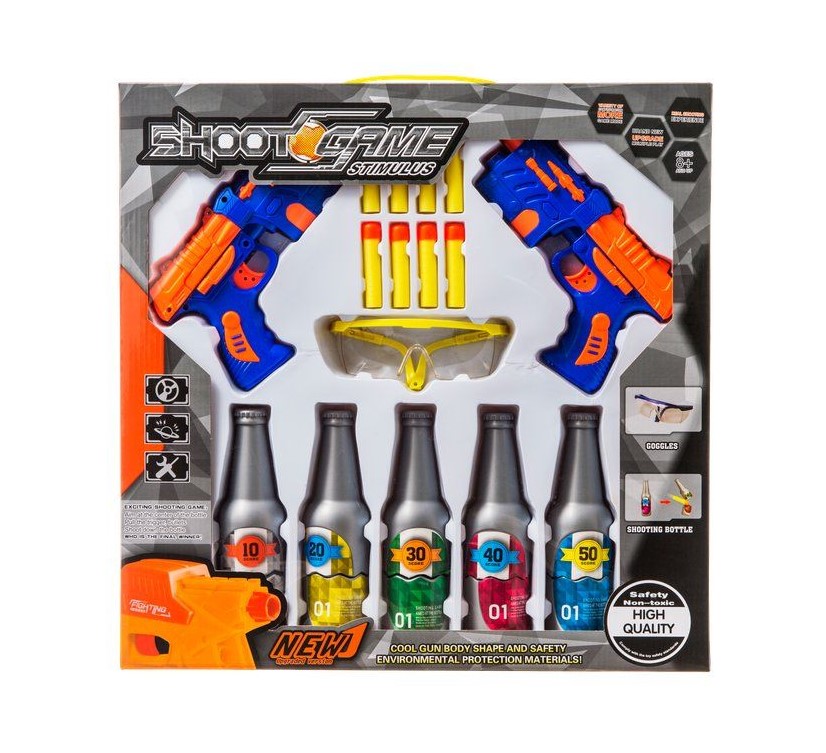 Setti sisältää leikkipyssyt ja kaksiosaiset pullot, jotka "halkeavat" pehmonuolen osuessa niihin. Leikkisetissä on kaksi värivaihtoehtoa, joista jompikumpi valikoituu tilaukselle varastosaldojen puitteissa. Ikäsuositus 8+.