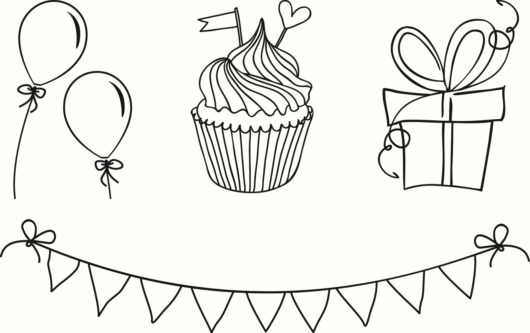 Puuleimasinsetti. Sisältää 4 leimasinta ja leimasinvärin. Leimasinväri musta ja sininen.