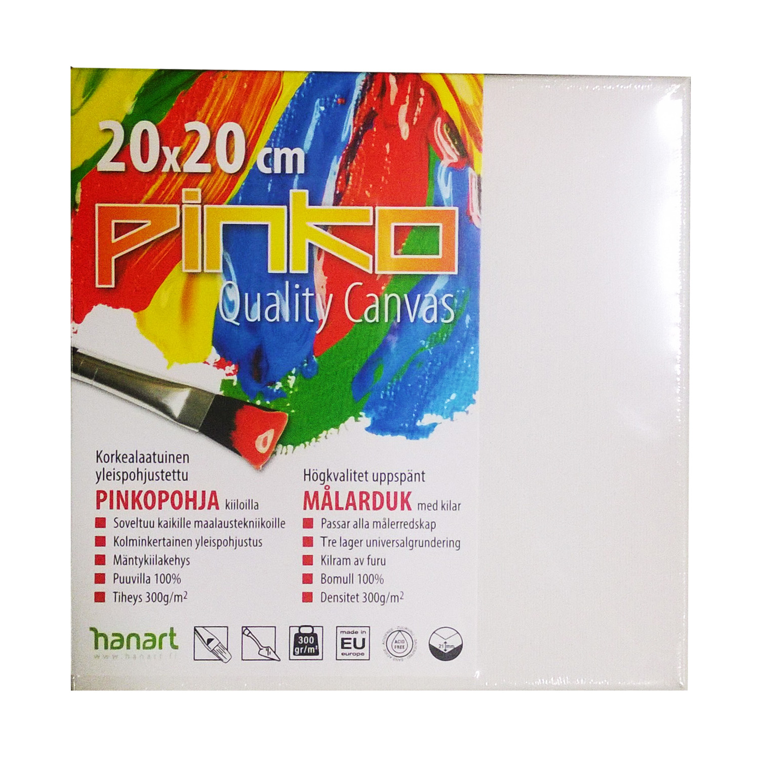 PINKO Maalauspohja 20 x 20 cm. 300 g/m2 . Kangas on kolminkertaisesti yleispohjustettua 100 % puuvillaa. Pitää muotonsa takuuvarmasti. Kiilapuu eurooppalaista mäntyä, paksuudeltaan 21 mm. Soveltuu... Lue lisää