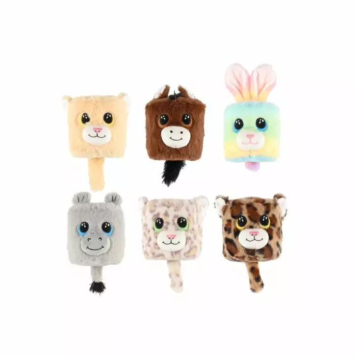 Pehmolelu 10cm lajitelma, 6 erilaista sylinterinmuotoisia pehmoleluja 6 erilaista vaihtoehtoa, toimitamme varastotilanteen mukaan.