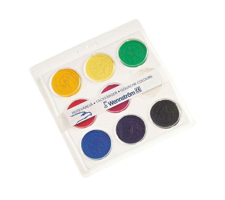 Kotimaiset, laadukkaat peitevärit muovisessa yhdeksän värin paletissa.