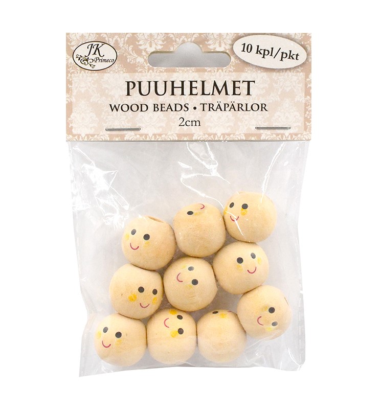 Puuhelmet askarteluun ja koristeluun. Hymyilevät naamat sopivat tonttujen ja muiden hahmojen askarteluun.
