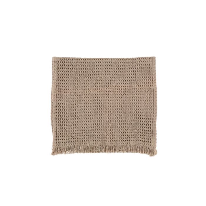 Fanni K Ruutu kylpypyyhe on valmistettu kierrätetystä vohvelisidoksesta. Hapsureunat lyhyillä sivuilla. Ripustuslenkki pitkällä sivulla. Koko 100x160 cm. Materiaali 100 % kierrätyspuuvilla. Väri beige.