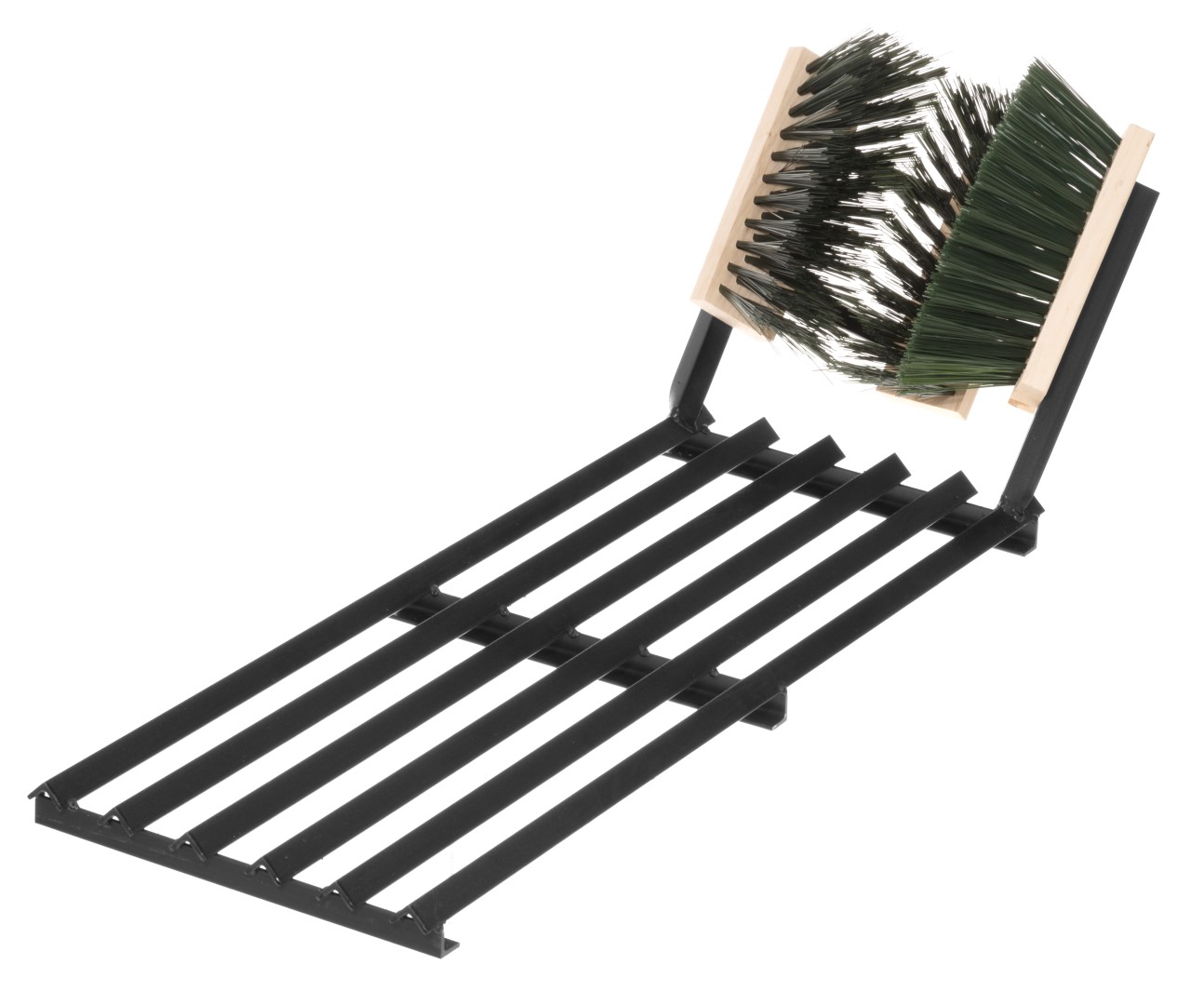 Kotimainen kolmen harjaspään rappuralli poistaa tehokkaasti ylimääräisen lian kengänpohjista. Rappurallin runko maalattua terästä, harjaspäiden runko koivua ja harjakset PVC-muovia.