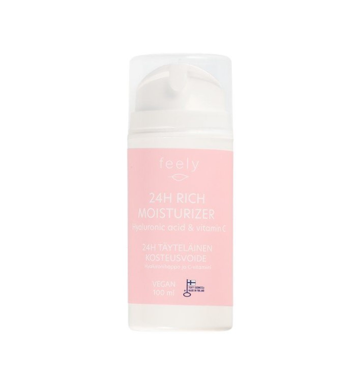 Feely täyteläinen kasvovoide on pehmeä, tasapainottava kasvovoide kaikille ihotyypeille. Voiteen täyteläisen koostumuksen sisältämä hyaluronihappo kosteuttaa tehokkaasti ihoa. C- E ja B3,5,6 -vitamiinit uudistavat, vahvistavat sekä pehmentävät ihoa. Ei sisällä silikonia eikä väriaineita. Miedosti hajustettu. Tuote on valmistettu Suomessa.