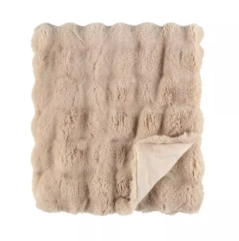 Ylellisen pehmeä torkkupeite tekoturkismateriaalista. Toinen puoli sileä.