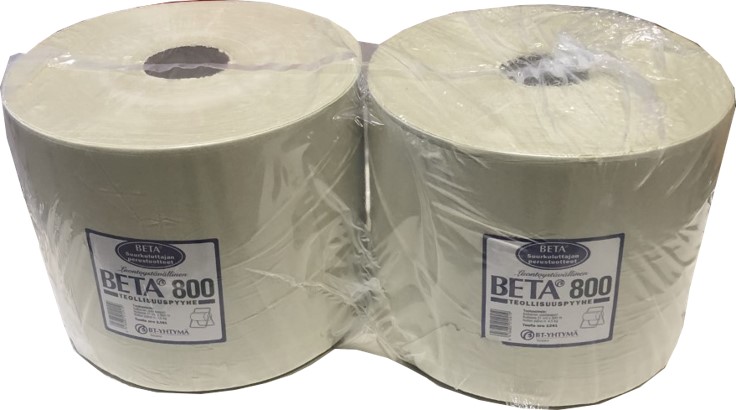 Keltainen teollisuuspyyhe, 800 m/rulla, 2 rullaa säkissä.