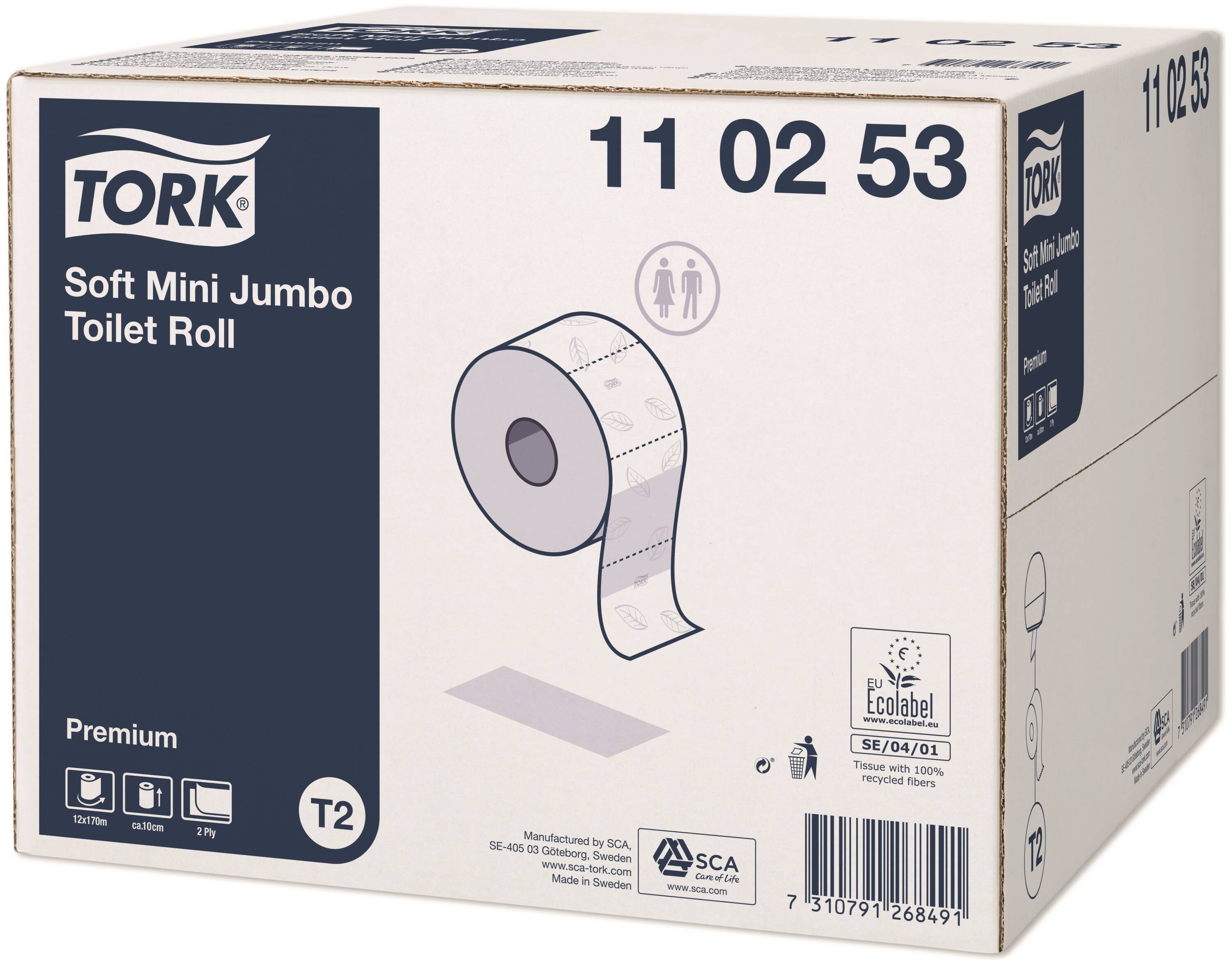 Tork Mini Jumbo -järjestelmä pitää sisällään paljon enemmän WC-paperia kuin perinteiset rullat. Näin se tehostaa ajankäyttöä ja vähentää kustannuksia. 2-kerroksinen Tork Mini Jumbo...