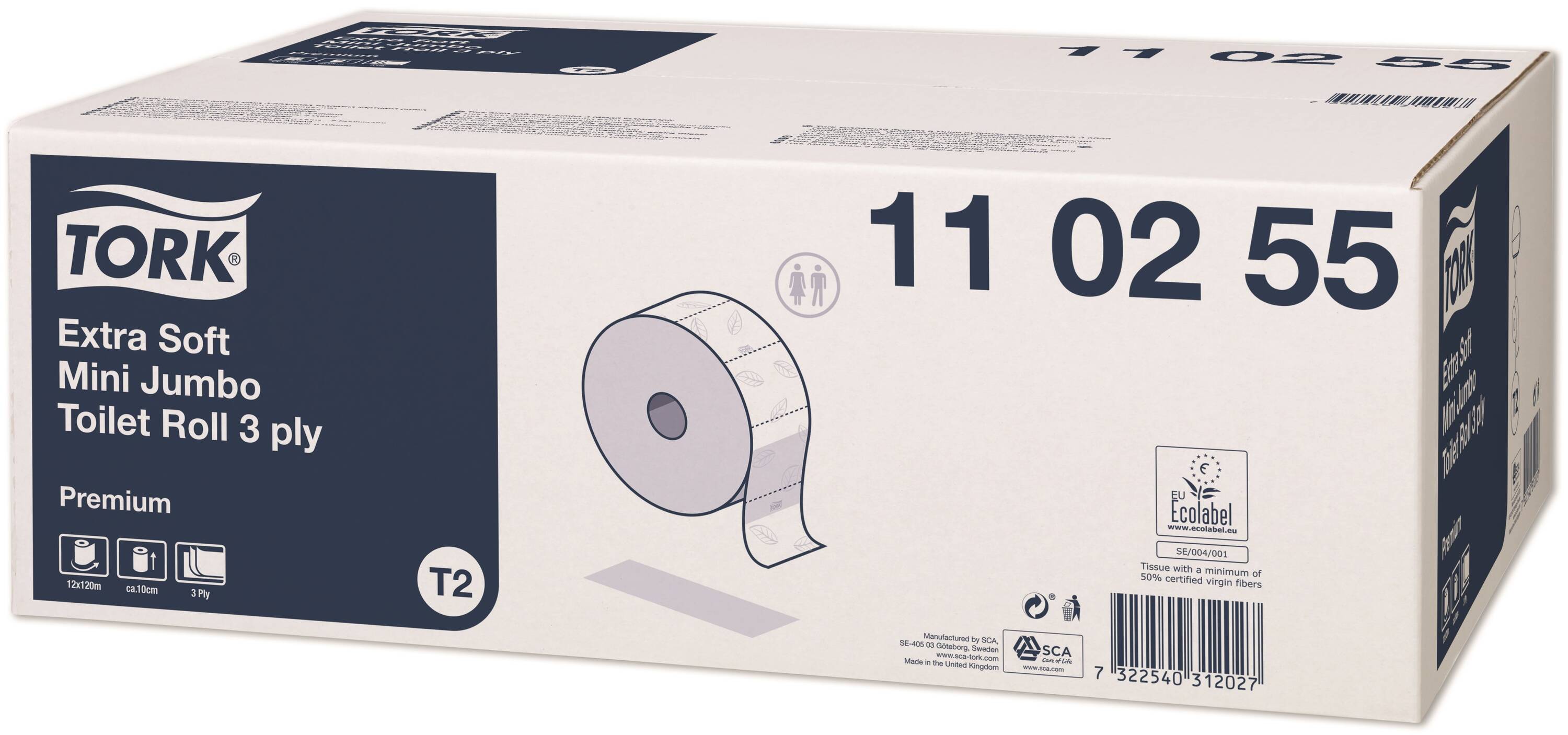 Tork Mini Jumbo -järjestelmä pitää sisällään paljon enemmän WC-paperia kuin perinteiset rullat. Näin se tehostaa ajankäyttöä ja vähentää kustannuksia. 2-kerroksinen Tork Mini Jumbo...