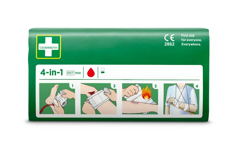 Pieni, hyvin varustettu ensiapupakkaus. Pakkaus on valmistettu kulutusta kestävästä nailonista, joka suojaa tuotteet lialta ja pölyltä.