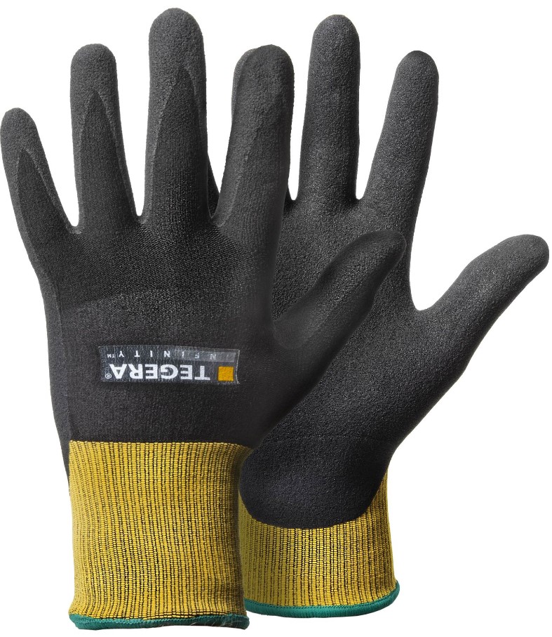 Tegera 8801 Infinity on synteettinen käsine, jossa on erittäin pehmeä nitriilivaahtopinnoite, joka tarjoaa erinomaisen pidon kuivilla pinnoilla. Hengittävät ja käytössä mukavat materiaalit. Suojaus kosketuslämmöltä 100°C:seen saakka.