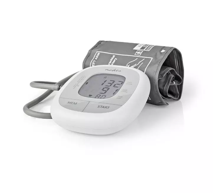 Tarkkaile verenpainettasi helposti täysin automaattisen Nedis-verenpainemittarin avulla. Tässä kliinisesti testatussa verenpainemittarissa on erittäin suuri näyttö, josta verenpaineen ja sykkeen lukeminen on helppoa. Mittausarvot luokitellaan väriasteikolla Maailman terveysjärjestö WHO:n ohjeiden mukaisesti. Lisäksi verenpainemittarissa on rytmihäiriön ilmaisin. Verenpainemittarissa on 2x60 muistipaikkaa, ja sen mukana toimitetaan mansetti, jonka ympärysmitta on 22–42 cm.
