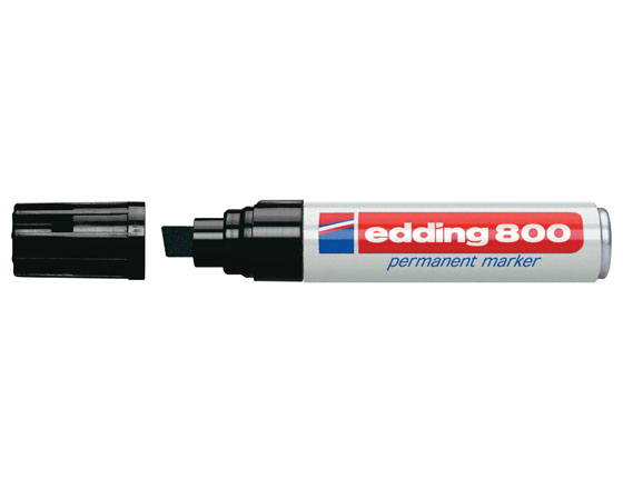 Viistokärkinen musta permanenttitussi. Jälki 4 - 12 mm. Muste kestää vettä ja valoa. Sopii yleisimmille pinnoille kuten paperi, puu, lasi ja metalli.