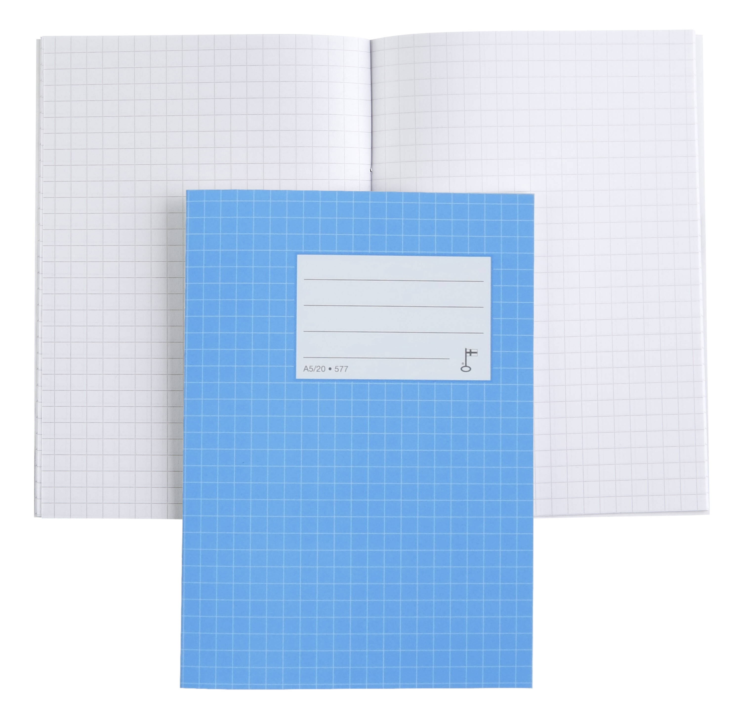A5 kokoinen 20 sivun nidottu vihko kouluun tai vapaa-aikaan.