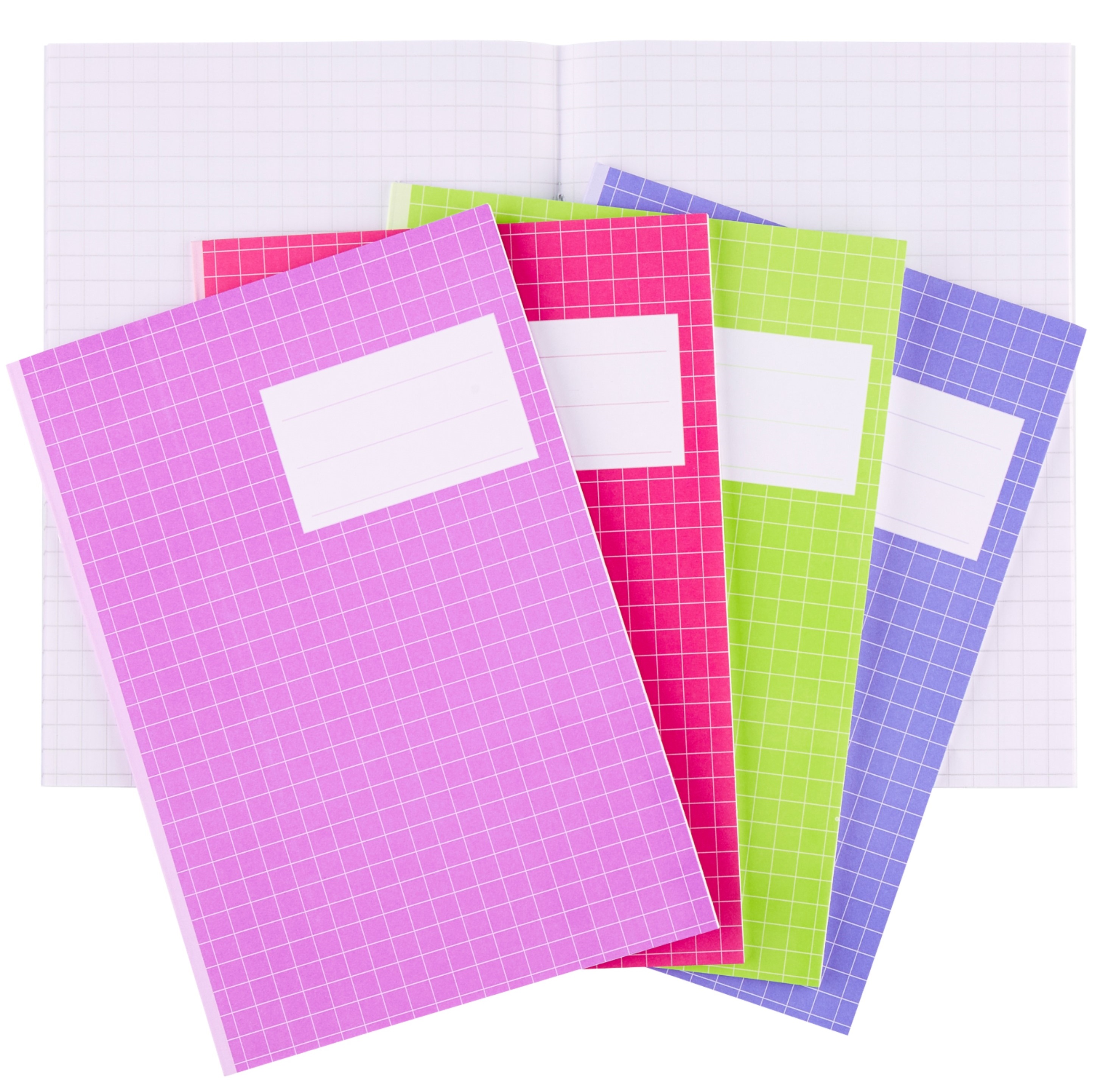 Värikäs kouluvihko, jossa 7x7 mm ruudut. Värivaihtoehdot pinkki, sininen, lila ja lime.