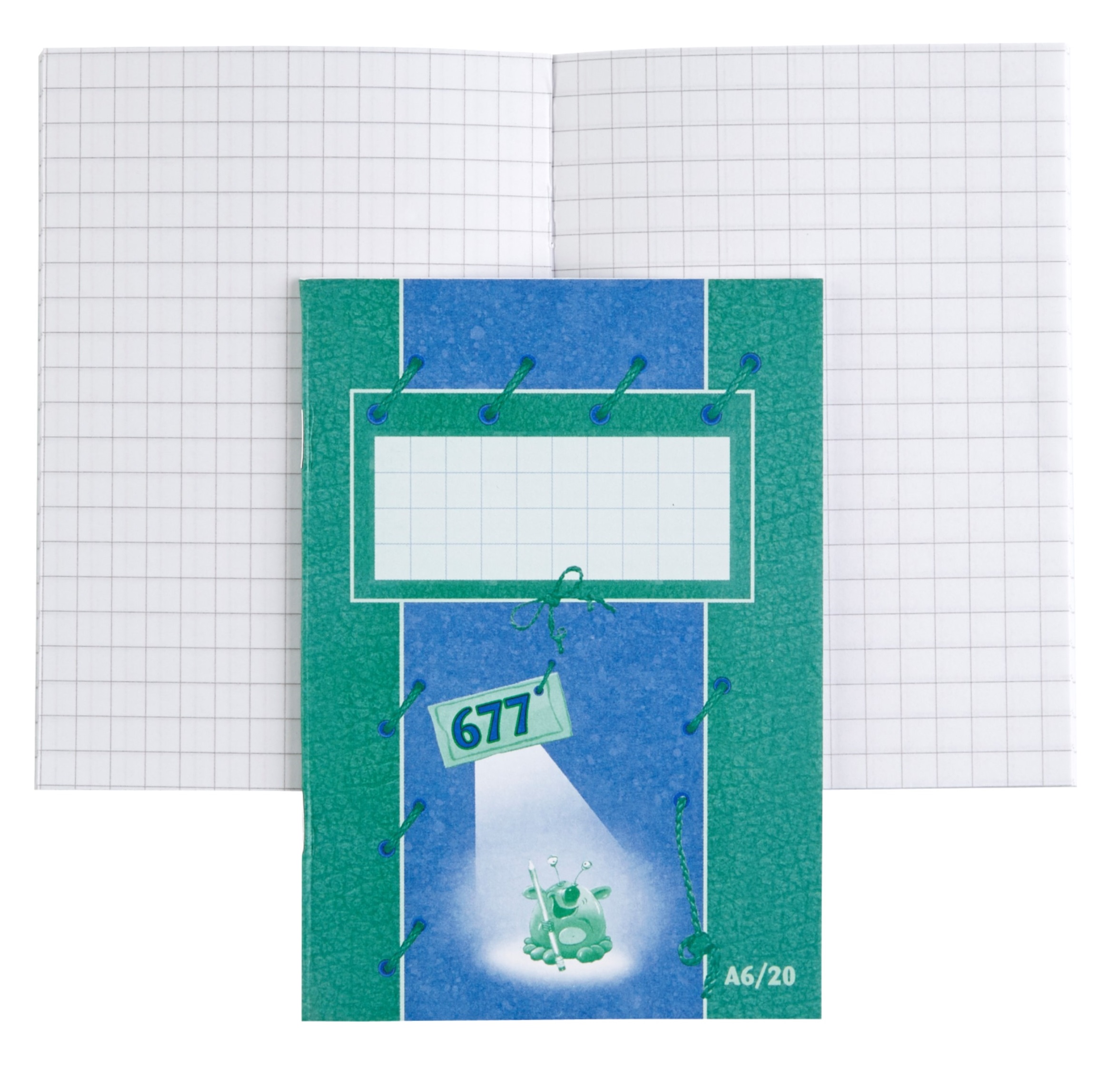 A6 kokoinen 20 sivun nidottu vihko kouluun tai vapaa-aikaan.