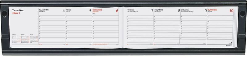 Musta muovinen pöytäalusta Memo-kalenterille. Pakkaus ei sisällä kalenteria.