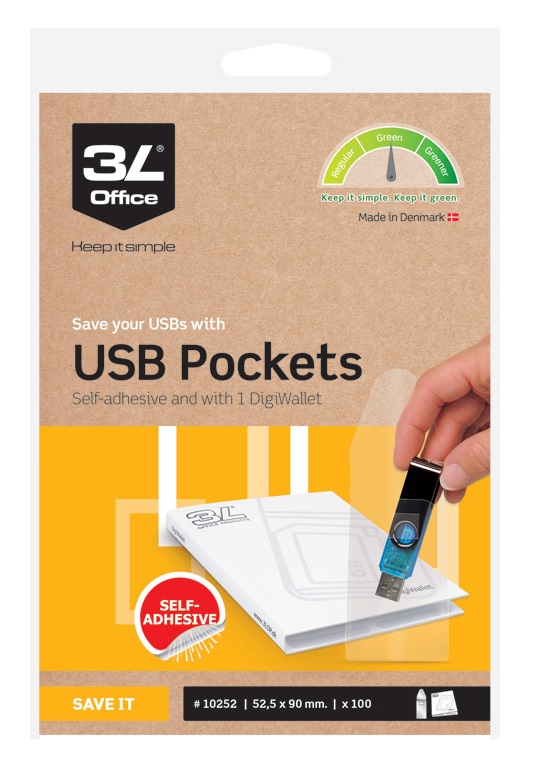 3L Muistitikkutasku Ideaali keino säilyttää ja suojata muistitikku. Taskussa on tarra, jotta muistitikku ei putoaisi sieltä pois. 52,5 x 90 mm. 100 kpl/pkt.